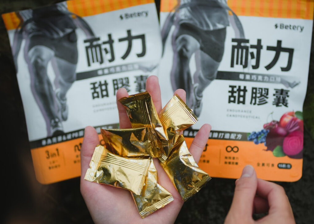 Betery主推的「耐力甜膠囊」,榮獲年日本2023「PAVONE AWARD」銀賞。有別於一般補給品利用咖啡因刺激途徑,耐力甜膠囊是由三種專利成分9種植萃,利用一氧化氮的途徑幫助運動耐力效果,深獲跑者喜愛。