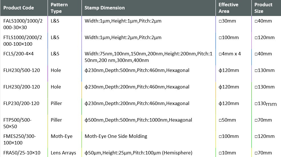 At the initial stage of nanoimprinting, the cost of expensive molds is considered a bottleneck of project progress. SCIVAX provides low-cost the off-the-shelf molds and custom production service that meet the customer’s specifications to speed up the initial evaluation. Please feel free to contact us for details