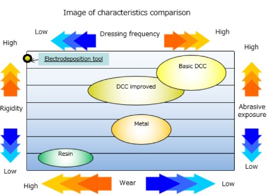 .備註:與單層電鍍鑽石產品相比,DCC透過修整使內部鑽石露出,因此壽命更長。