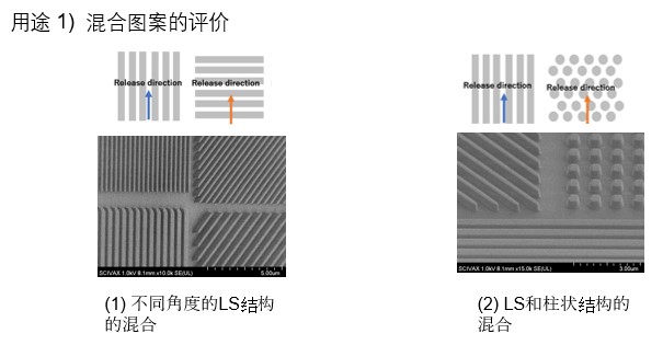 8寸測試用模板,是用於評價製造AR眼鏡用光波導的晶元級奈米壓印技術的工具。此模板特别適用於評價高折射材料的壓印工藝,並被用於奈米壓印量產的測試。圖案的設計包括不同填充比,不同偏向角的二维光栅,柱状結構和空白區域。我们也可以提供無空白區域的全圖案模板。