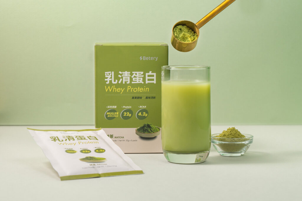 Betery乳清蛋白保有最完整的活性成分,完全不使用人工香料、人工色素、人工甜味剂和化学添加物,确保高品质且无负担。其中,「Betery乳清蛋白─抹茶」荣获最高等级的A.A.100%无添加认证,严选日本静冈百年制茶厂─佐佐木制茶厂的顶级抹茶粉,其抹茶荣获iTOi首届三星级日本茶奖及最高荣誉钻石奖,浓郁抹茶入口后,茶香与乳香交融带出沉稳回甘的鲜甜。