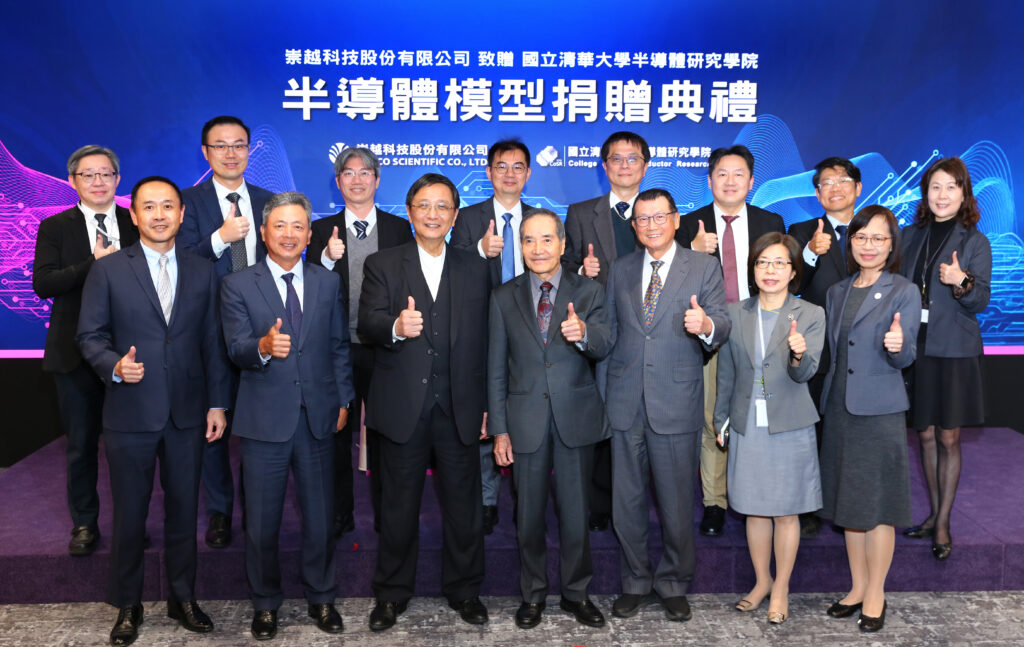 为强化台湾半导体人才培育与前瞻研究能量,崇越科技今(16)日于台北内湖总部捐赠三座半导体模型予国立清华大学半导体研究学院,协助教学展示与研究推广。同时,由崇越科技董事长潘重良与清华半导体研究学院院长 被誉为「浸润式微影之父」的林本坚博士共同签署合作意向书,─宣布双方将展开更深度的产学链结,携手培育下一代高阶半导体科技人才。